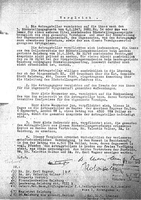 vom 27.4.1949, 4500 Dollar für eine geraubte Liegenschaft.