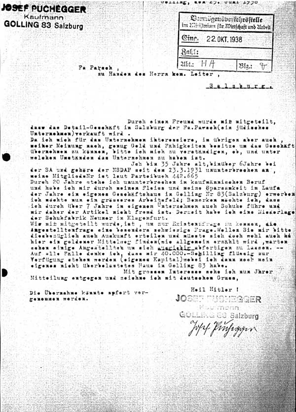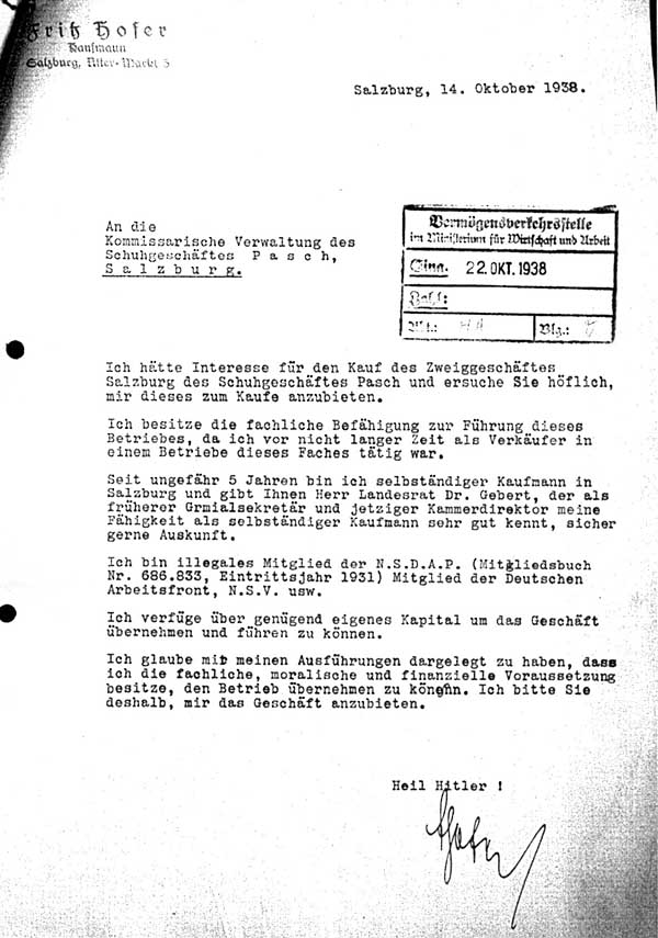 Arisierer zur Übernahme eines jüdischen Geschäftes