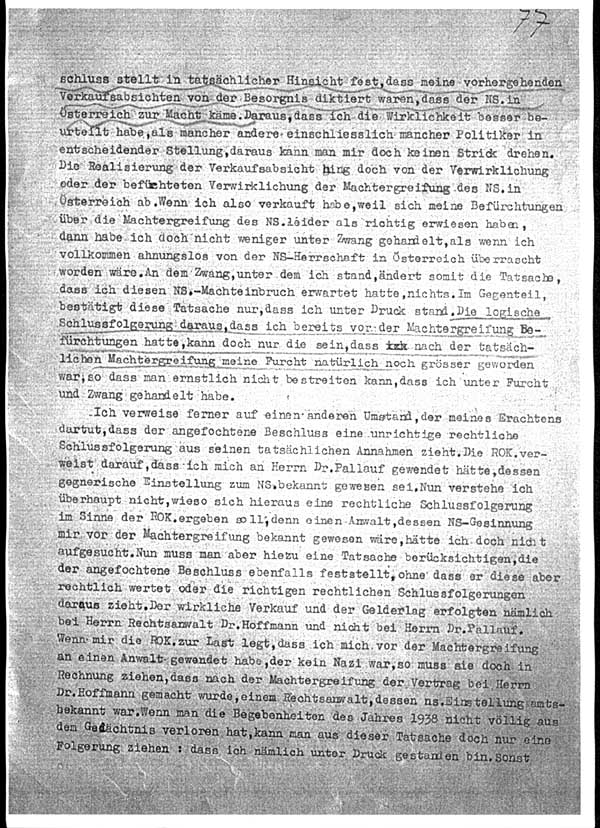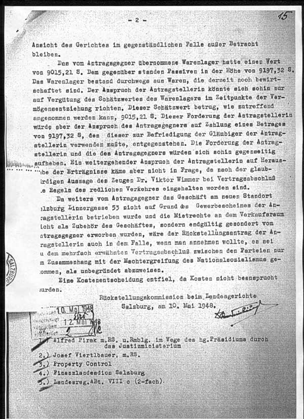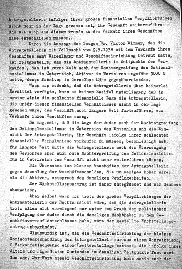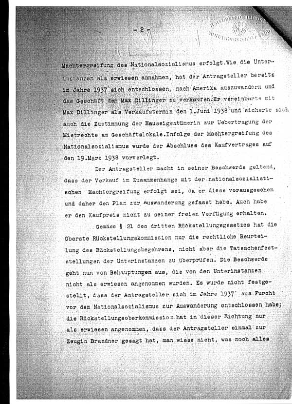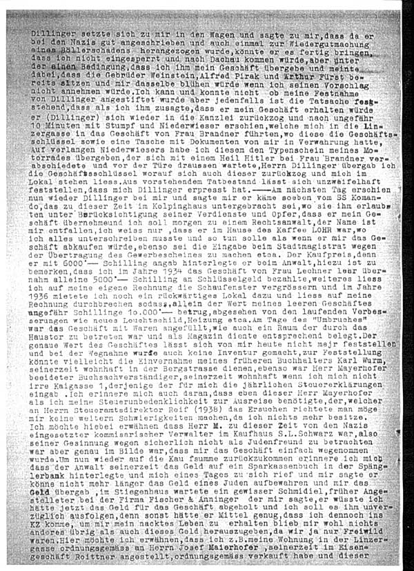 "Arisierung" seines Geschäftes, eine Rückstellung
