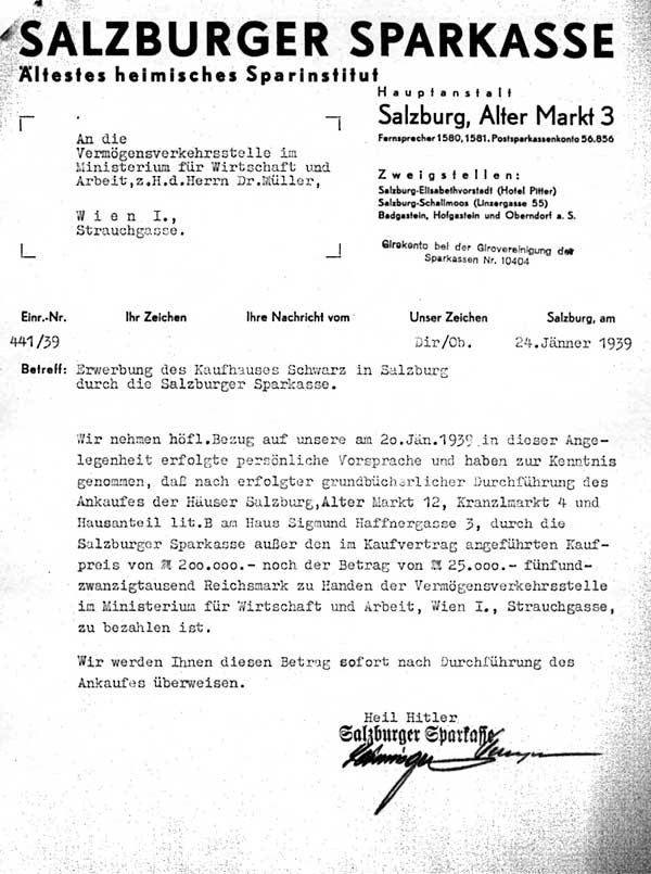 des Kaufhauses Schwarz durch die Salzburger Sparkasse, die immer