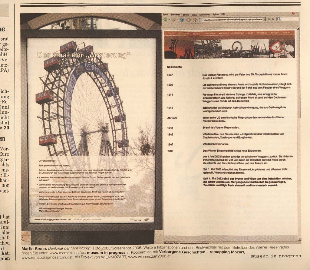 Der Standard, museum in progress, 2006 (image of the billboard from 2005/image of the offical website of the riesenrad company 2006)