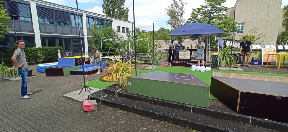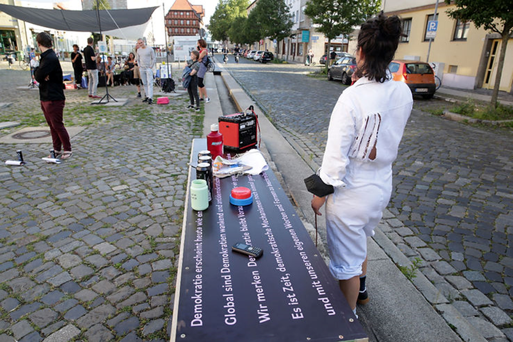 Die Coronakrise hat die Gesellschaft tiefgehend verändert und ihre Polarisierung verschärft. So läuft die politische Debatte immer stärker entlang (scheinbarer) Gegensätze: individuelle Freiheit versus Solidarität, Skepsis versus wissenschaftlich fundierte Fakten und Meinungsmanipulation versus Querdenken. Als Antwort auf die resultierende Polarisierung der Gesellschaft und aufgrund des Bedürfnisses nach Begegnungen im physischen Raum wurde am Freitag, dem 3. September 2021 eine künstlerisch-dialogische Installation eröffnet. Auf dem Wollmarkt hinter der alten Waage konnten Braunschweiger:innen eine Woche lang in dieser aus mehreren Holzmodulen bestehenden künstlerischen Arbeit Platz nehmen und über verschiedene gesellschaftspolitische Themen in den Austausch treten. Nach Ablauf der Projektzeit wanderte die modulare Skulptur zu anderen Orten und kam dabei unter anderem beim Rene Festival (2022) und dem Flüchtlingsprojekt „Interkultureller Garten Braunschweig“ (2022) zum Einsatz.